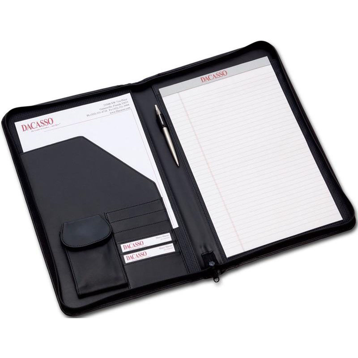 Although it would be great for anyone taking notes on the go. This portfolio is lightweight and securely holds a letter-sized notepad, a pen, business and/or credit cards, and loose sheets of paper in various sizes (like copies of your resume!). The inner zipper pocket can hold a smartphone too. The design on this is sleek and plain so it looks sharp and professional to clients or potential employers. Zipper is great. Nothing falls out and your things have some protection if you drop the whole thing in a puddle.
